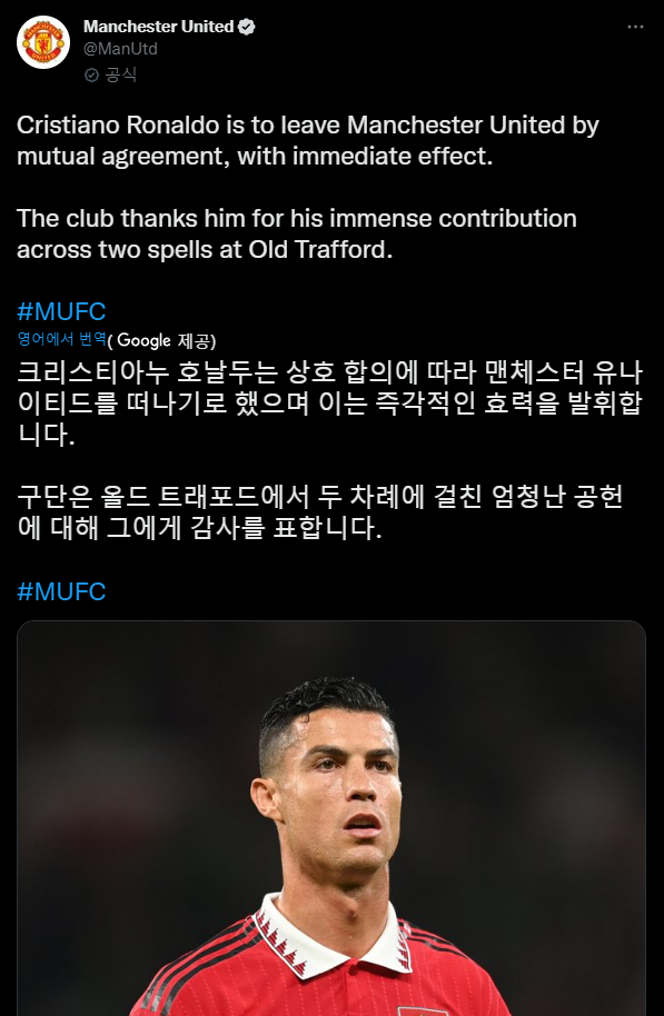 속보)호날두 맨유와 계약해지