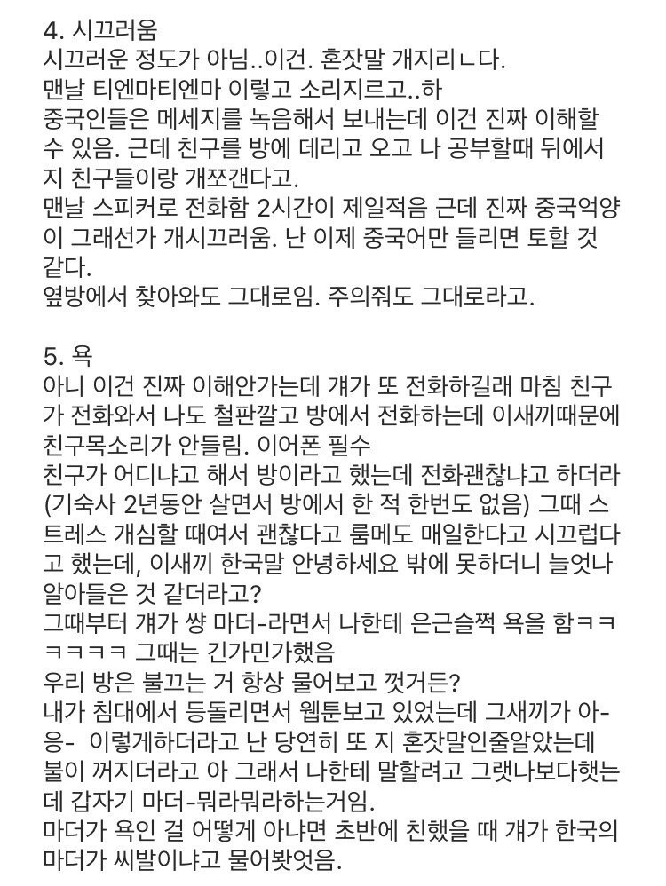 중국인 룸메 후기