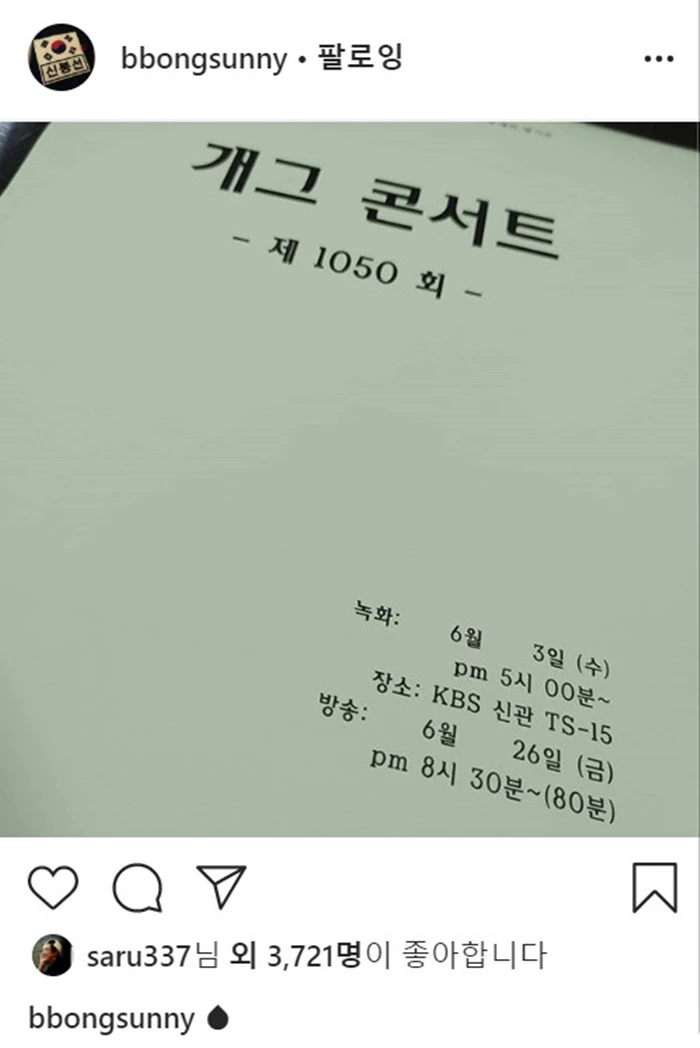 -'개그콘서트' 마지막 녹화 당일 올라온 사진
