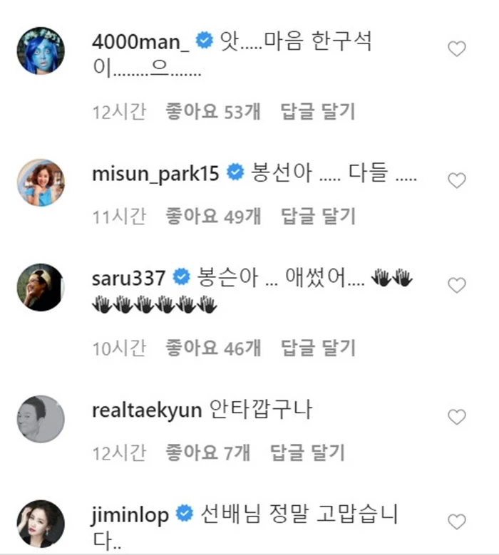 -동료 연예인들이 남긴 격려와 응원의 댓글들